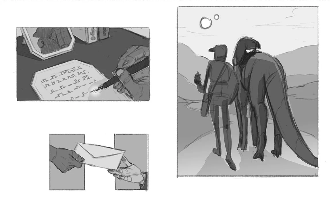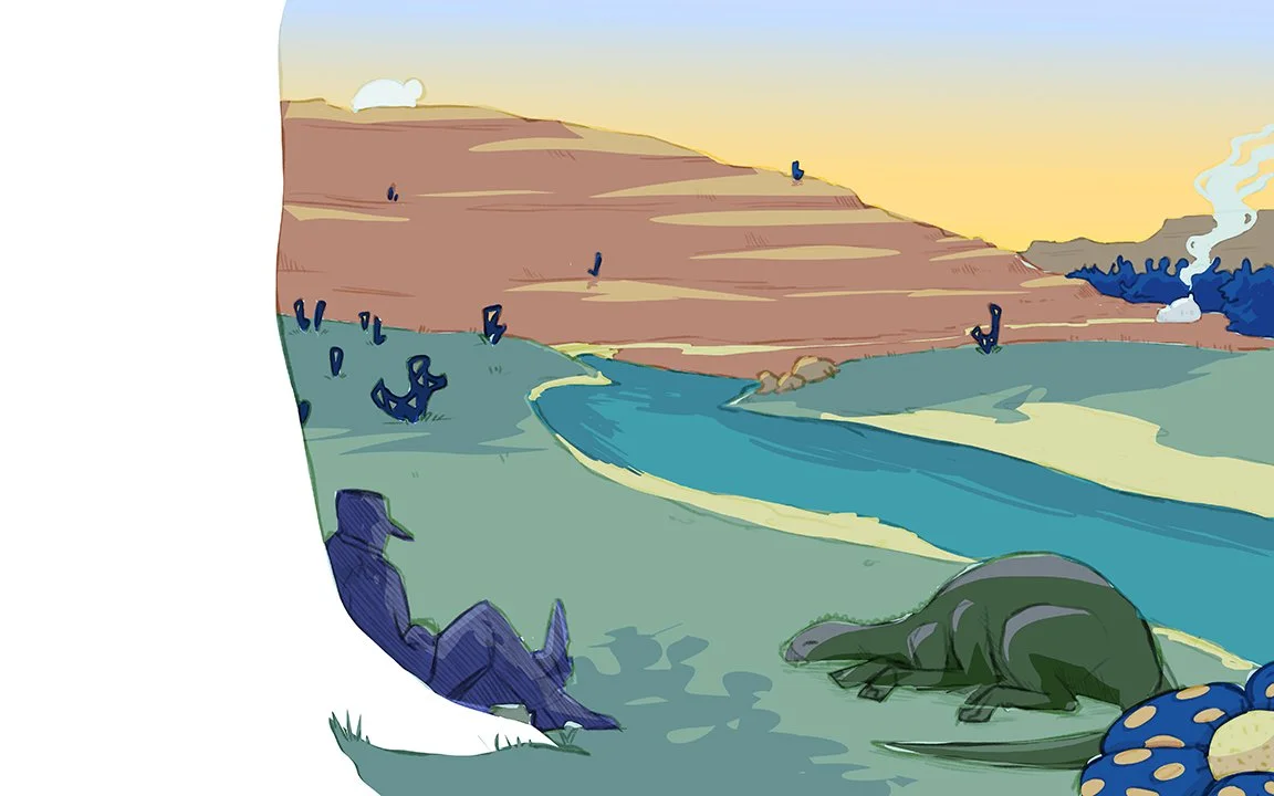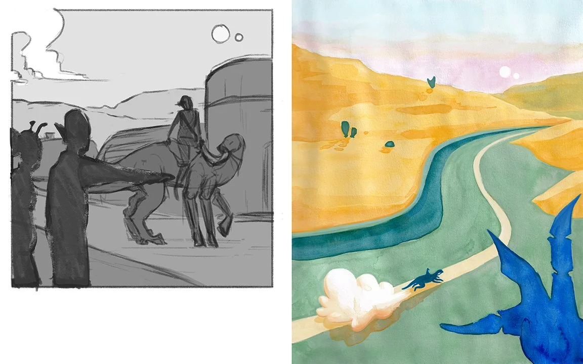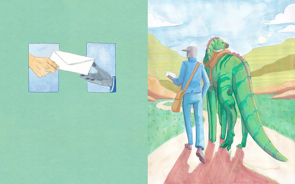 This picture book dummy puts a science fiction spin on the poem The Traveling Post Office by Banjo Paterson. Follow a robot postman and their faithful companion as they travel the alien plains of a far-off world on a journey to deliver a letter.